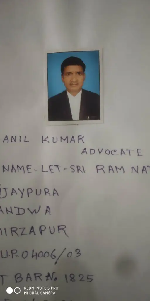 Mr. Anil kumar Job Role: Advocate Bar Council No.: 4006 Phone: 9129371404 Email: Anil kumar Job Role: Advocate Bar Council No: 4006 Phone: 9129371404 BAM No.: 1825 E-Mail: